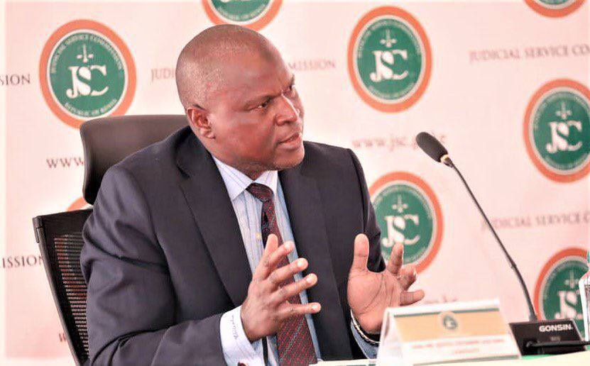 Justice nduma mathews nderi faces the interviewing panel.