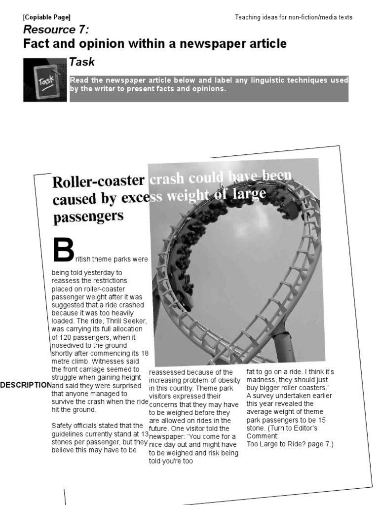 Newspapers are a great source of vocabulary, particularly phrasal verbs in the tabloid press. Facts are indisputable truths, and opinions are someone's perspective or judgment(s). Which facts and figures will ground your story? Sir ian mckellan played gandalf in the lord of the rings and the hobbit franchises. Read examples of news and feature articles from the scholastic kids press corps. Make your headline short and snappy. If a url runs across multiple lines of text in the citation, break the url off before punctuation (e.g., periods, forward. For example, here's a news article about santacon , which you can read alongside. An editorial is a newspaper article that expresses one's opinion. Newspaper articles provide information on newsworthy topics; News articles that help motivate or provide you fall into the category of motivational articles. Fill your newspaper report with both facts and opinions. Opinion pieces are featured in many periodicals.